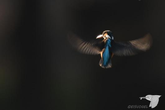 今日のカワセミ散歩も16時半過ぎに出かけました。池に着いて2周歩いたところで北側の柳の枝に飛来、それからトベラの裏側、ピラカンサの枝など、移動するだけで飛び込む気配なし・・・陽がさして明るい時間帯に、飛び込などのパフォーマンスを披露してくれると嬉しいのですが・・・結局今日も17時前後の30分くらい、池にいたのにほとんど撮影チャンスなし、そしてその後50分くらい待たされて、再飛来して動き出したのは18時10分過ぎでした。陽は落ちてもう暗い、テレコンを外してヨンニッパ単体にしても、感度はISO1600・・・2度続けて飛び出し後すぐにショートホバ! やっぱりホバが目に入るとレンズを振ってしまいますね、でも短すぎて間に合わず、その後飛び込んだ水出にも間に合わず・・・二兎を追うものは一兎をも得ず・・・でした。数分後にまたホバ~勿論、二兎を追うつもりで再びレンズを振ると、今度は2、3秒しっかりホバって元に戻ってくれました。(^o^) その2分後の飛び込み時は、集中力が残っていたこともあって、完璧にファインダー内にとらえることができました。捕った魚は自分で食べて、水浴び、羽繕い・・・あら、今日はこれでお終い? 再びピラカンサの枝に戻ったので、これから餌運びが始まると期待しましたが、すでに18時半過ぎ・・・ヨンニッパ単体、F値開放でもISO3200・・・厳しい! 数分後に飛び込んで採餌失敗・・・水出に間に合わず、枝に戻ったので一息ついていると、何と間髪おかずにすぐに飛び込んだので、水出に間に合わず・・・ファインダー内で追うと魚が暴れてる・・・しかしピンが抜けていることも分かりました。残念! 大魚を料理して雛の元へ・・・ということは数分後にまた戻ってくると確信・・・6分後に戻って来ました。(^o^) でも感度はISO6400・・・5分経っても飛び込まずに移動・・・ようやく飛び込んで失敗・・・その後釣り堀方向へ消えて行きました。18時45分、撤収・・・今日のパフォーマンスはいい? 悪い? それ以前の問題・・・18時以降は暗い!(^o^)