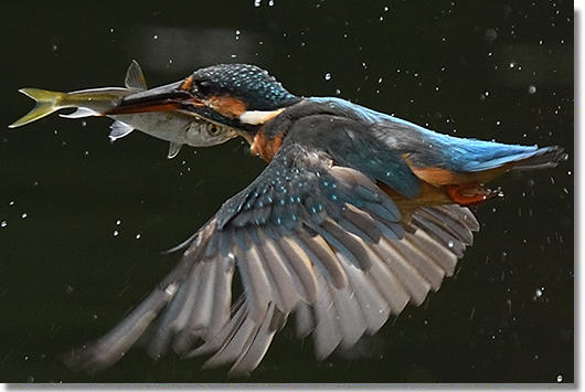 久しぶりにトビモノの撮影チャンスに恵まれましたが、やっぱりあまり間隔が開いてしまうと、爆速のカワセミをファインダー内でしっかりとらえるのは難しいですね。でもトビモノ撮影は楽しい・・・そそ、池の主のオス、今飛来している幼鳥の親かどうかは未だに判明しませんが、間違いなく今魚を運んでいる雛の親でしょう。