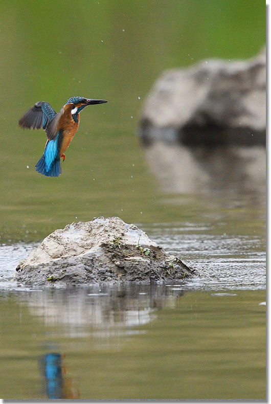 ワンチャンス・・・柳の枝からの飛び込み、想定よりかなり手前に飛び込んだので、水出の瞬間は完全なピンぼけ・・・3コマ目でピントが合ってきましたが・・・