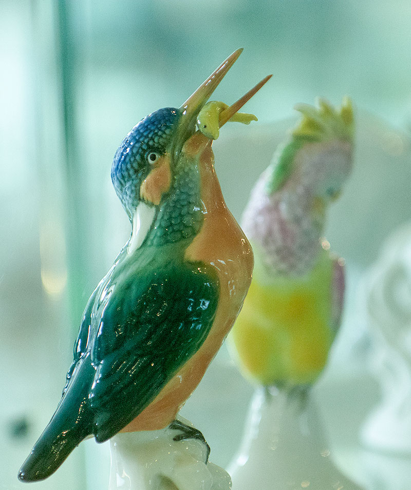 マイセンの陶磁器工房のショールームに展示していたカワセミです。約28万円でした。地震国日本ではこのような高価な割れ物のは買えませんね。(^o^)