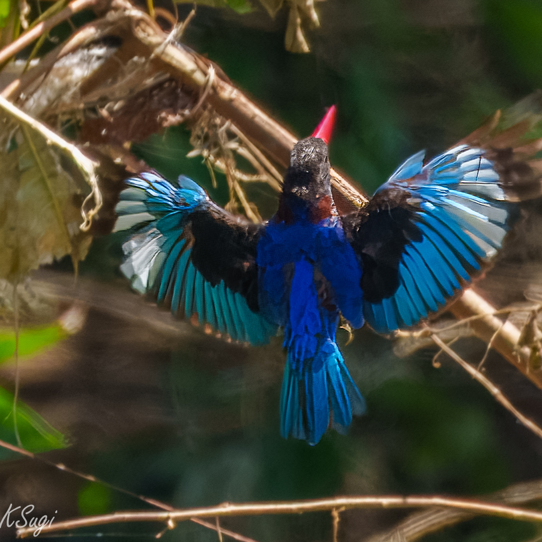 ジャワショウビンです。バリ島のデンパザール空港から西バリ国立公園に車で向かう間、何カ所か止まって撮りました。最初に止まった場所で見つけられず不安だったのですが、次の海岸では飛んでいるのを見て、その次の場所で撮ることが出来ました。その後も田園地帯を走っているときに飛んでいたり電線に止まっているのを2-3回見たので、バリ島ではそれほど探すのに難しくない鳥さんでした。