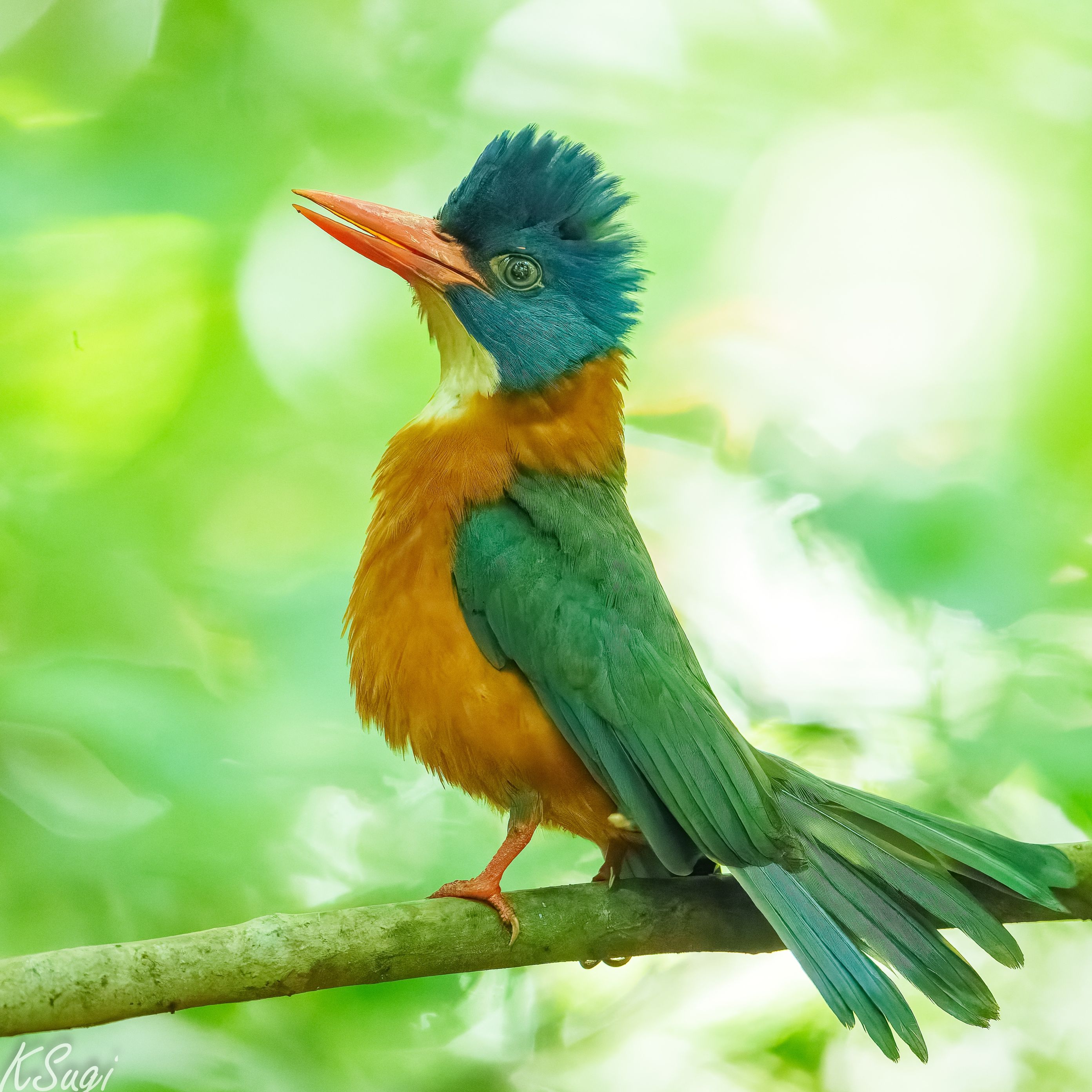 タンココ国立公園内で撮ったチャバラショウビンです。タンココ内では2組の番に遭うことが出来ました。なかなか冠羽を立ててくれませんでしたが、♀が近くに来たときに興奮して、冠羽が立っているところを撮らせてもらえました。