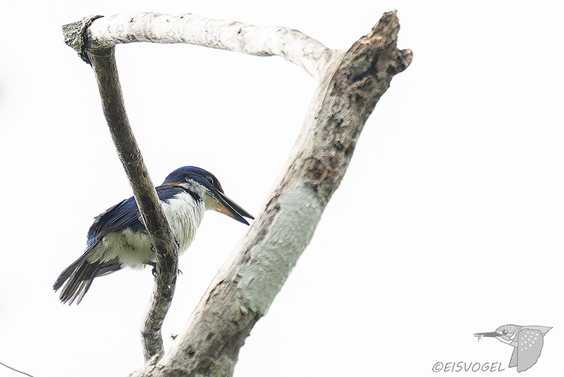 フィリピンのミンダナオ島に生息する固有種です。雨が降る中、雨雲バックの高い枝にいるところしか撮ることはできませんでしたが、何とかチャエリショウビンの識別点である襟と額の茶色を入れることができました。 800 x 536 (153 kB)